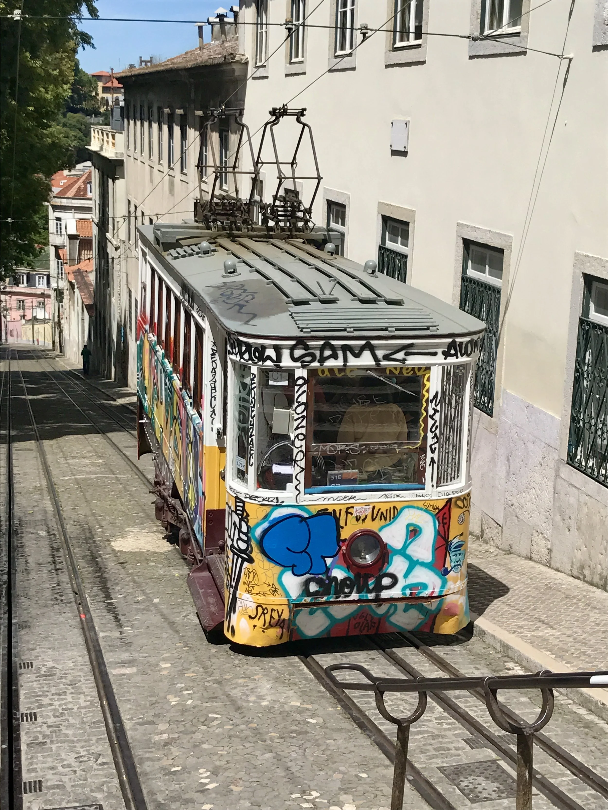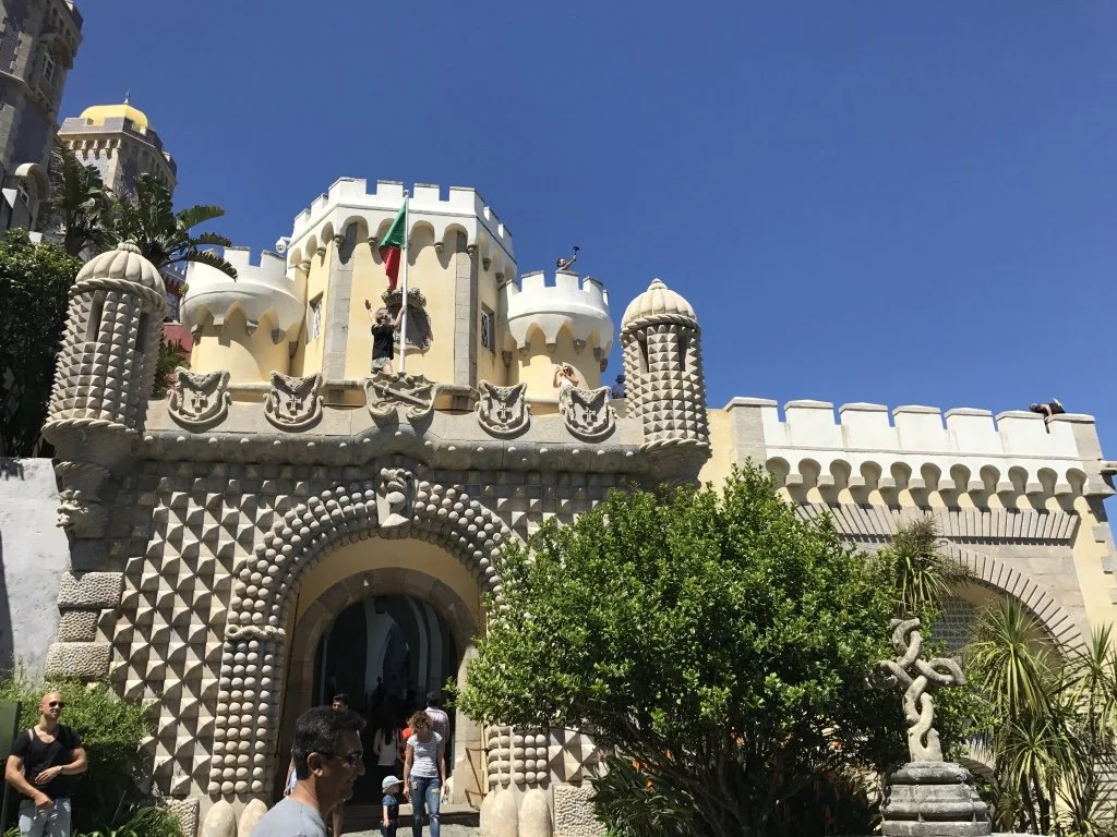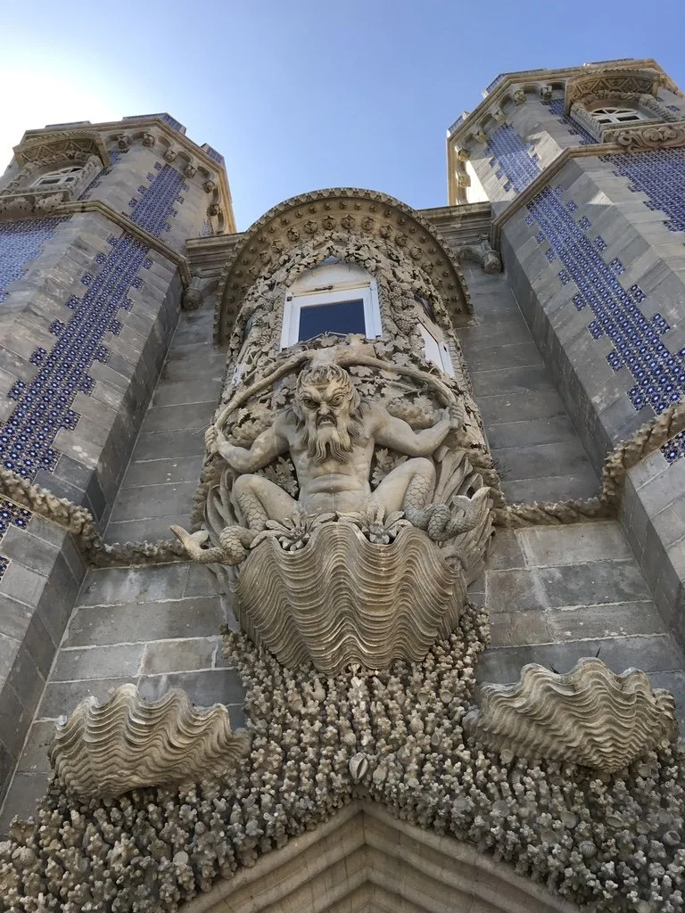 After lunch, we grabbed a tuk-tuk to the castle on top of the mountain. Our driver was young and a bit wild with #BigFish written in permanent marker on his windshield. Roxy exclaimed, “Look Mom, it’s a sign!” (The company I own and founded over 30 years ago is called Big Fish). Up we went, round and round to Palacio da Pena. Rising up to the sky, the fantastical palace looked like something out of a Shrek film. A former monastery in the Moorish style, the royals lived here until they were driven into exile by the birth of the republic in 1910. The interiors, with hand-carved furniture and lavish finishes, are exhibited with design flourishes everywhere.