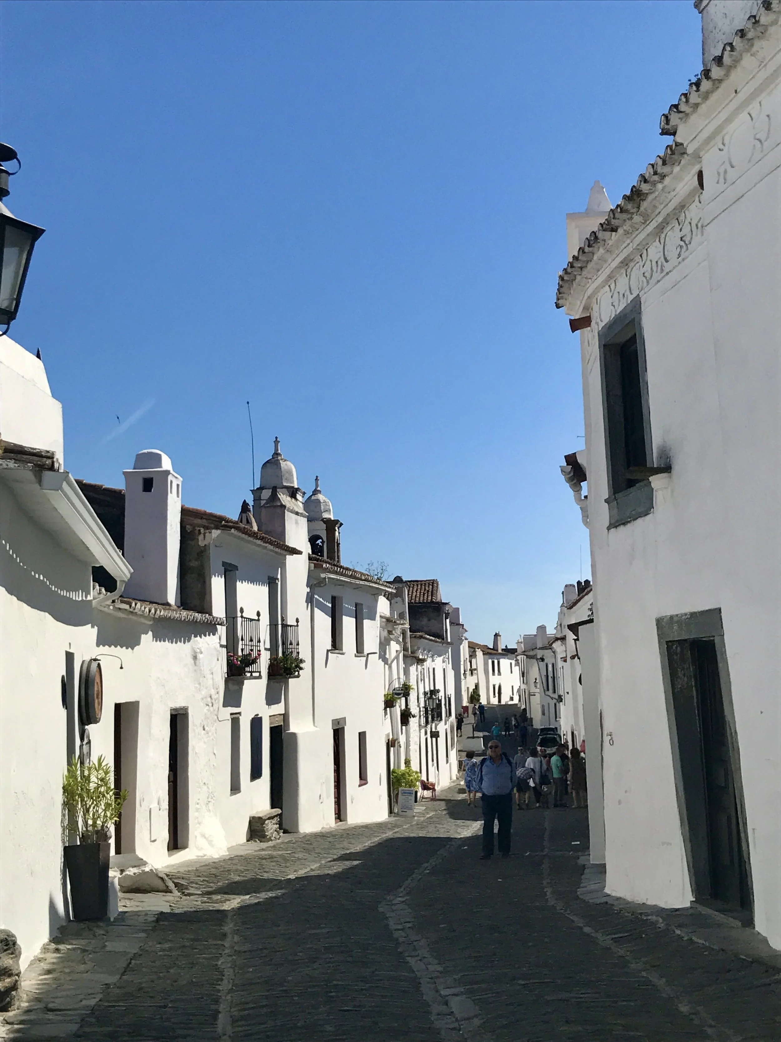We climbed the soaring Torre das Tres Coroas at the top of the Estermoz Castle. From there we could see lush vineyards, golden plains, and the historic city’s two layers of defensive walls. Estremoz is nicknamed “Ciudad Branca” or The White City for its abundant white marble, which gives the whole place an irresistible luster.