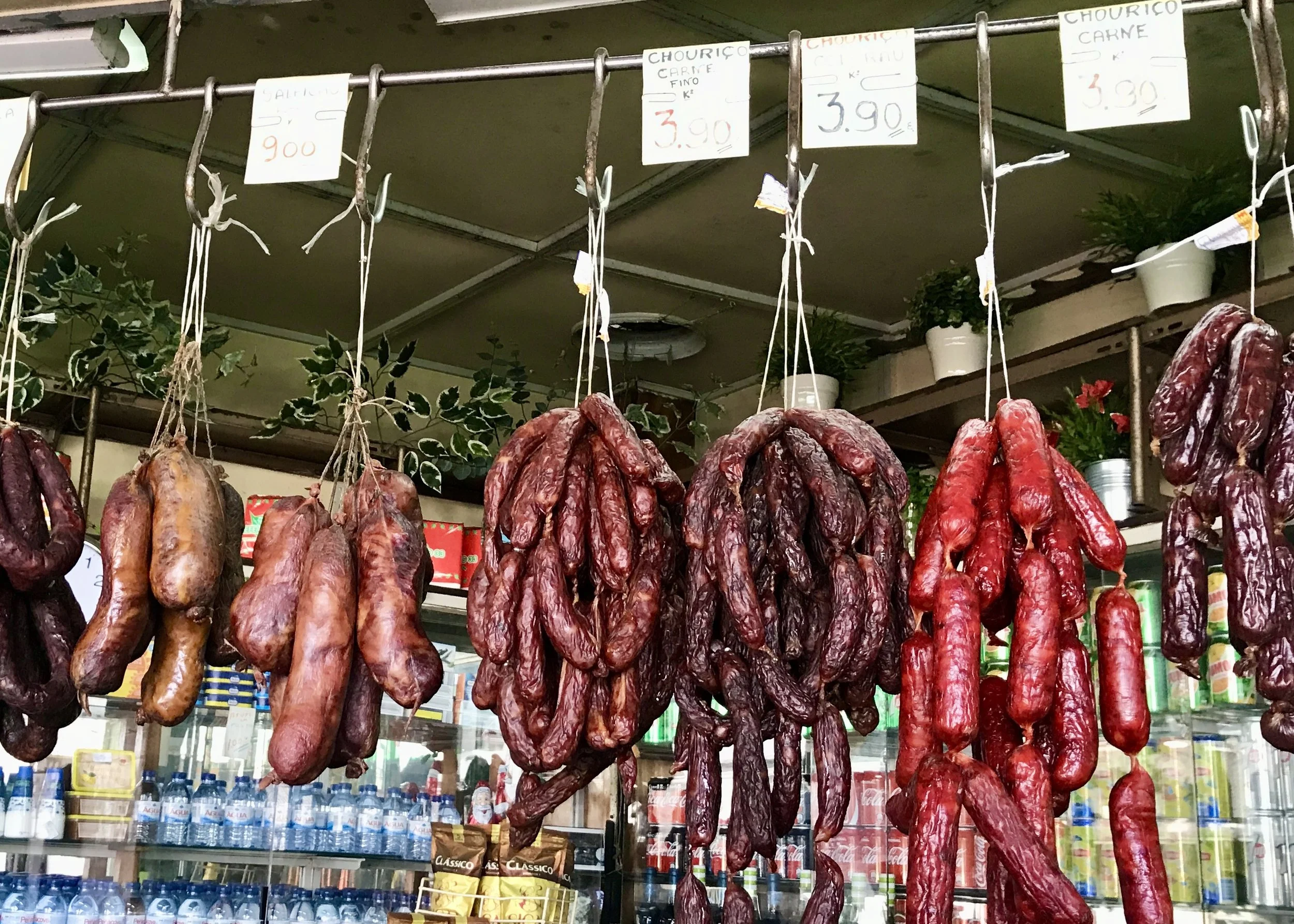 We began our repast with fried vegetables and Portuguese sausage, olives and bread. Then we moved on to the famous black pig prepared two ways: grilled and roasted. It was tender and hearty. Naldo, the restaurant’s talented and precocious chef, hovered over our table as he poured local wine and took sips from our bottle.