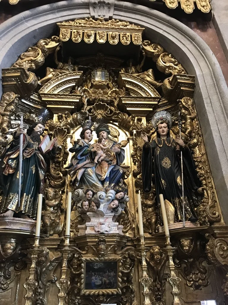 In the morning, we met Pedro, our Porto guide. He was charming and handsome with wavy salt and pepper hair, and a closely trimmed beard, wearing stylish jeans and a navy t-shirt. The first stop on our tour was Porto Cathedral, one of the city’s oldest and most important sites for its magnificent Portuguese blue and white tiled murals and gothic elements. Stepping out of the Cathedral, Pedro took us to a viewpoint showcasing the city’s distinctive, red-tiled roofs. When Roxy mentioned we were Jewish, Pedro led us through the Jewish Quarter, where we marveled at mezuzahs and Hebrew engravings still visible on the houses and shops.