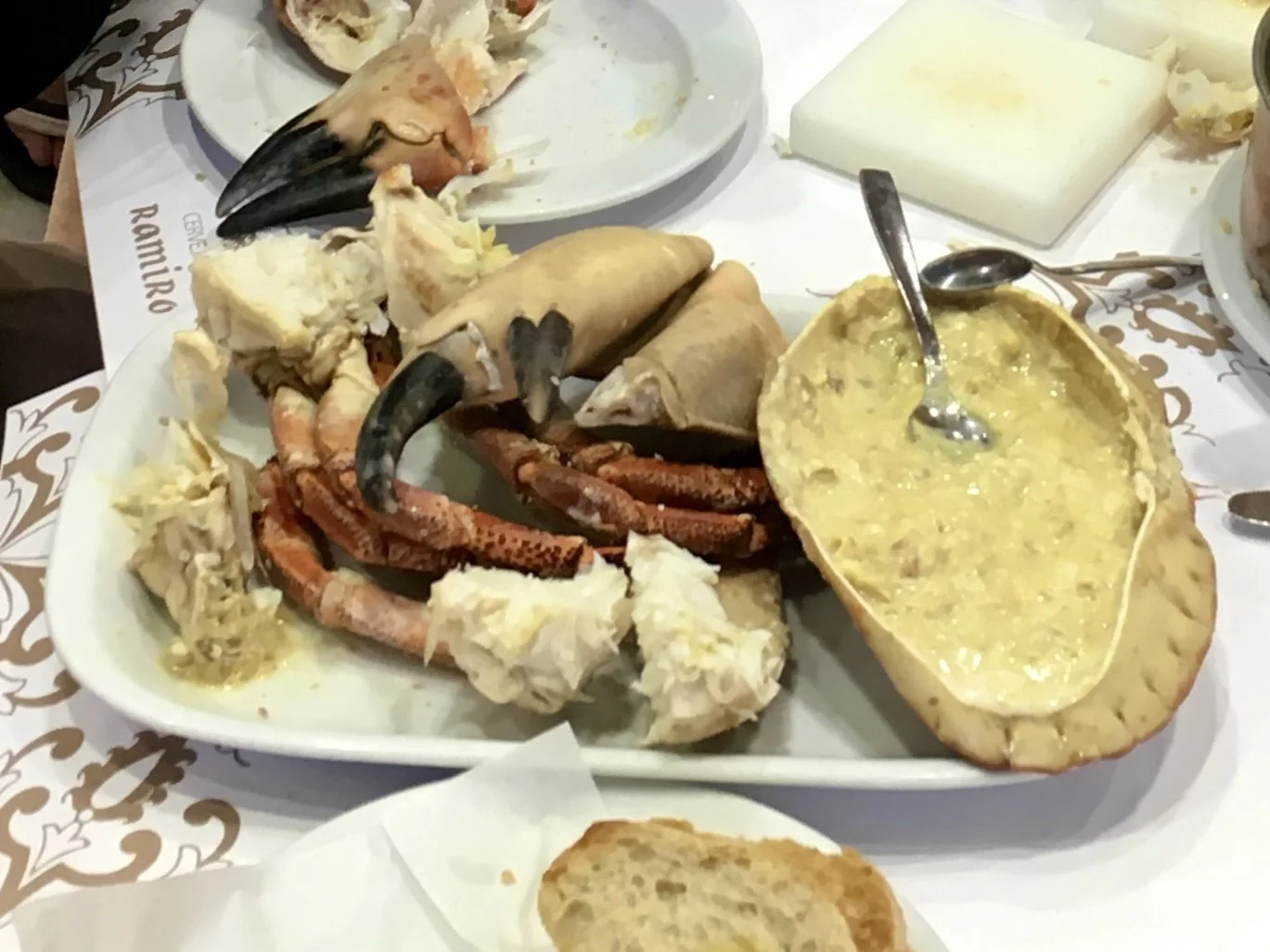 Back in Lisbon, we stood in line at Ramiro, where they served crab and tiger shrimp by the pound. We joined the long queue and indulged in unparalleled fresh flavors, relishing every bite. First to the table, an enormous crab whose shell was filled with a delectable crab soup. “I wish I had two stomachs like horses do so I could eat more. This is amazing!” I said to Roxy while rubbing my full tummy. She agreed, swinging her mallet to open claws and legs. Just then, a copper pot of garlicky clams was served along with foot-long tiger shrimp, seasoned with olive oil and paprika. Roxy’s face was priceless as she devoured each treasure. Shells and meat were flying into the air, into our hair, and onto our faces as we pounded open the crab.